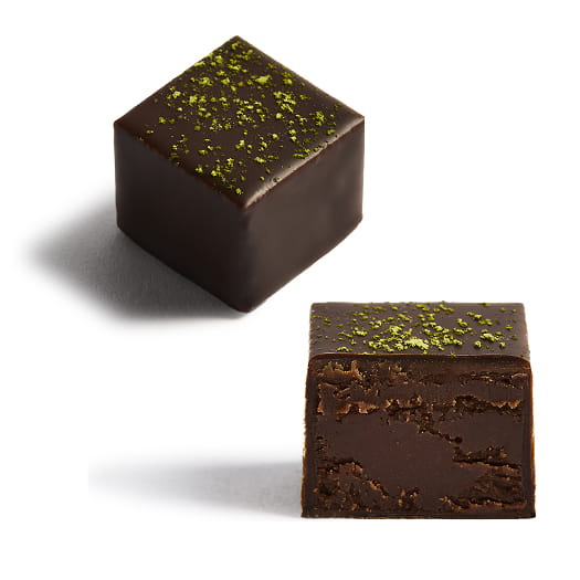 日本酒とチョコレートが調和した新しい味わいを求め、ピエール マルコリーニが生み出したひと粒が、“沈黙の味わい”。日本酒「黒龍 石田屋」を使用したガナッシュをビターチョコレートでコーティング。奥深く洗練された味わいに仕上がった。