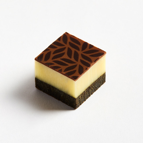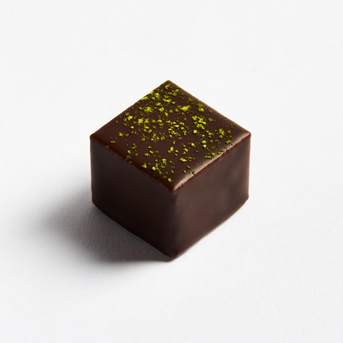 スダチ、ミカン風味のガナッシュをミルクチョコレートでコーティング。フルーティーな酸味となめらかな口当たり。