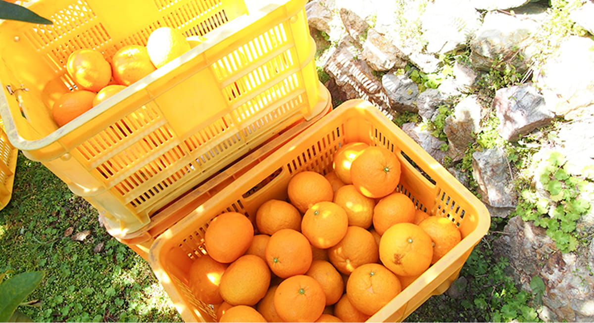 みかんの生産量日本一を誇る和歌山。中でも古くから栽培が行われていた有田は海と山に囲まれており、その山のほぼすべてがみかん畑です。人が住む平地もみかん畑で、山と町中にみかん畑が広がる、全国的にも珍しい地域です。有田の段々畑で、太陽をいっぱい浴びて育つ「紀州有田みかん」は、みかんのトップブランドとしてたくさんの方々から愛され続けています。 有田でおいしいみかんをつくることができるのは、みかんづくりに適した土壌と、400年以上にも渡る先人達による努力があるから。有田みかんは、黒潮から吹くミネラルを含んだ潮風を受けて育ちます。紀州の暖かい気候と潮風によって、他には出せない凝縮されたコクが生まれます。 また、有田のみかん園の7割が傾斜地で、そのほとんどが石垣階段型のみかん畑です。江戸時代から先人達が手作業で築き上げた石垣を、補修しながら今もなお残し続けています。 その理由は、石垣が持つ保温効果、排水効果、光の反射効果によるもの。多すぎる水は水っぽい大味のみかんができてしまうため、石垣の水はけの良さが強いコクと甘みを生み出します。有田の土壌と、歴史、伝統が、みかんのおいしさをつくり上げているのです。 みかんの里となったこの地では、季節ごとにおいしいみかんがたくさん採れるようになりました。