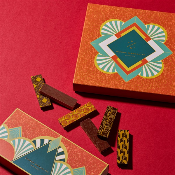 アール・デコの幾何学模様をプリントしたホリデーシーズンの新作チョコレート。