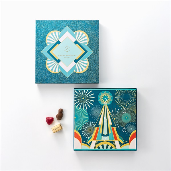 アール・デコのデザインを施したボックスに、ピエールマルコリーニの⼈気のチョコレートを詰め合わせました。
