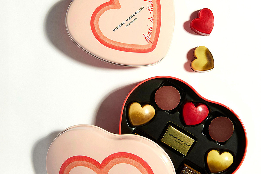日本の柑橘を使用した新フレーバー「クール ココロ アグリュム キャラメル」をはじめ、 ゴロゴロとしたナッツの食感が楽しめる「プラリネ ピスターシュ」、定番人気の「プティ ビズー」などを詰め合わせました。 毎年人気のハート缶は、ピエール マルコリーニ自身が書いた「Merci de tout Cœur(心からありがとう)」のメッセージをデザインに落とし込んだ特別仕様のデザインです。